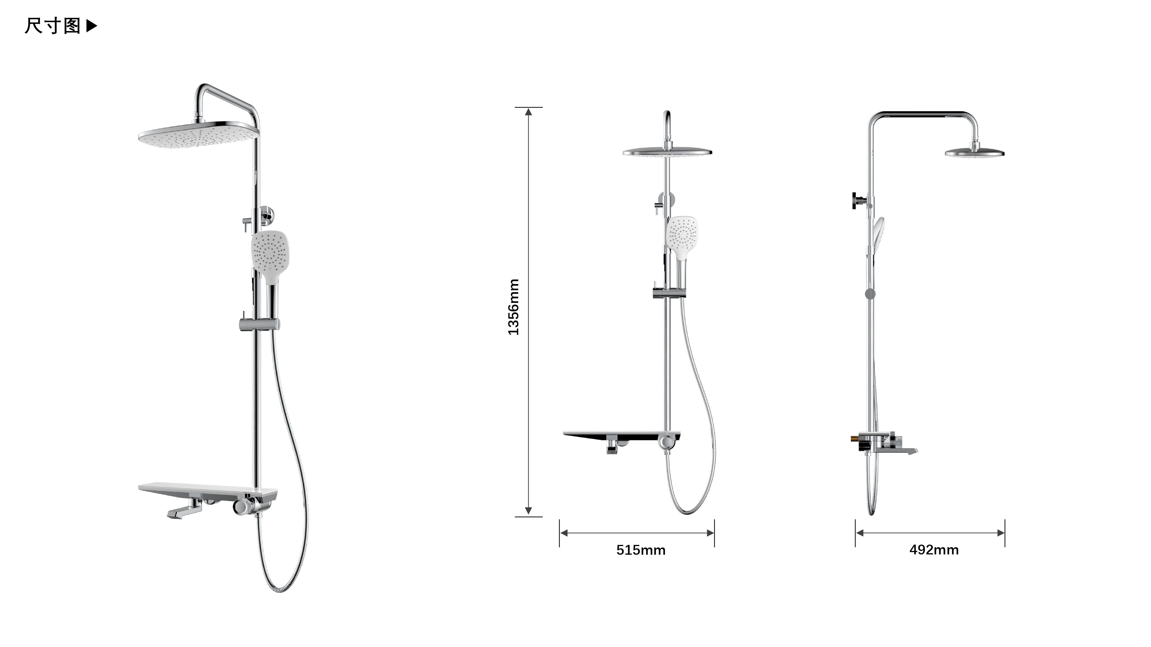 帶下出水大平臺置物;旋鈕切換四種模式出水